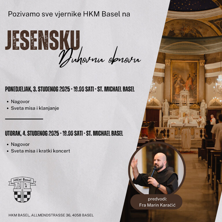 21.09.2025 Patrozinium, u crkvi St. Michael Basel u 11.00 sati, zajedno sa švicarskom župom St.Clara, slijedi Apero